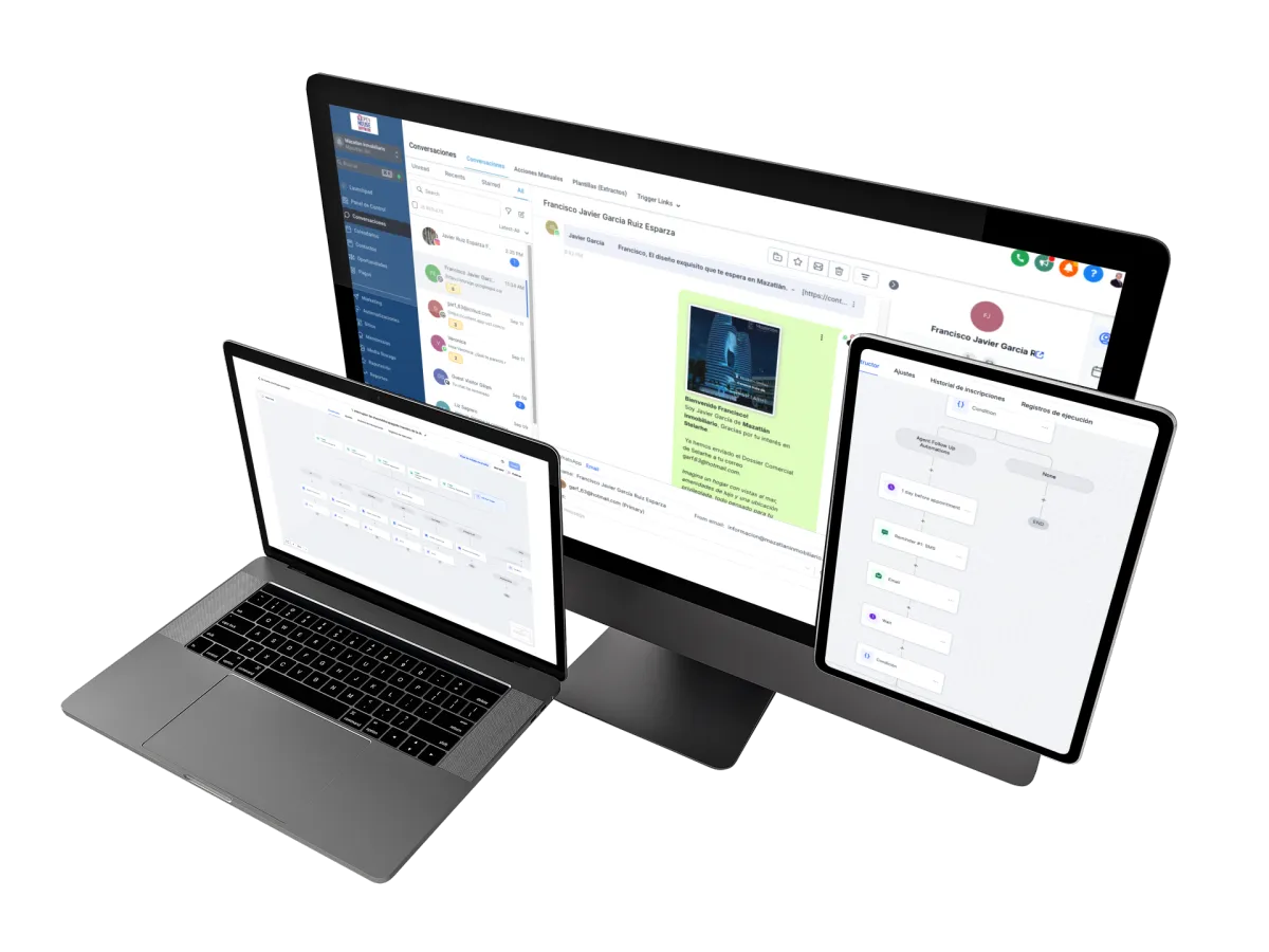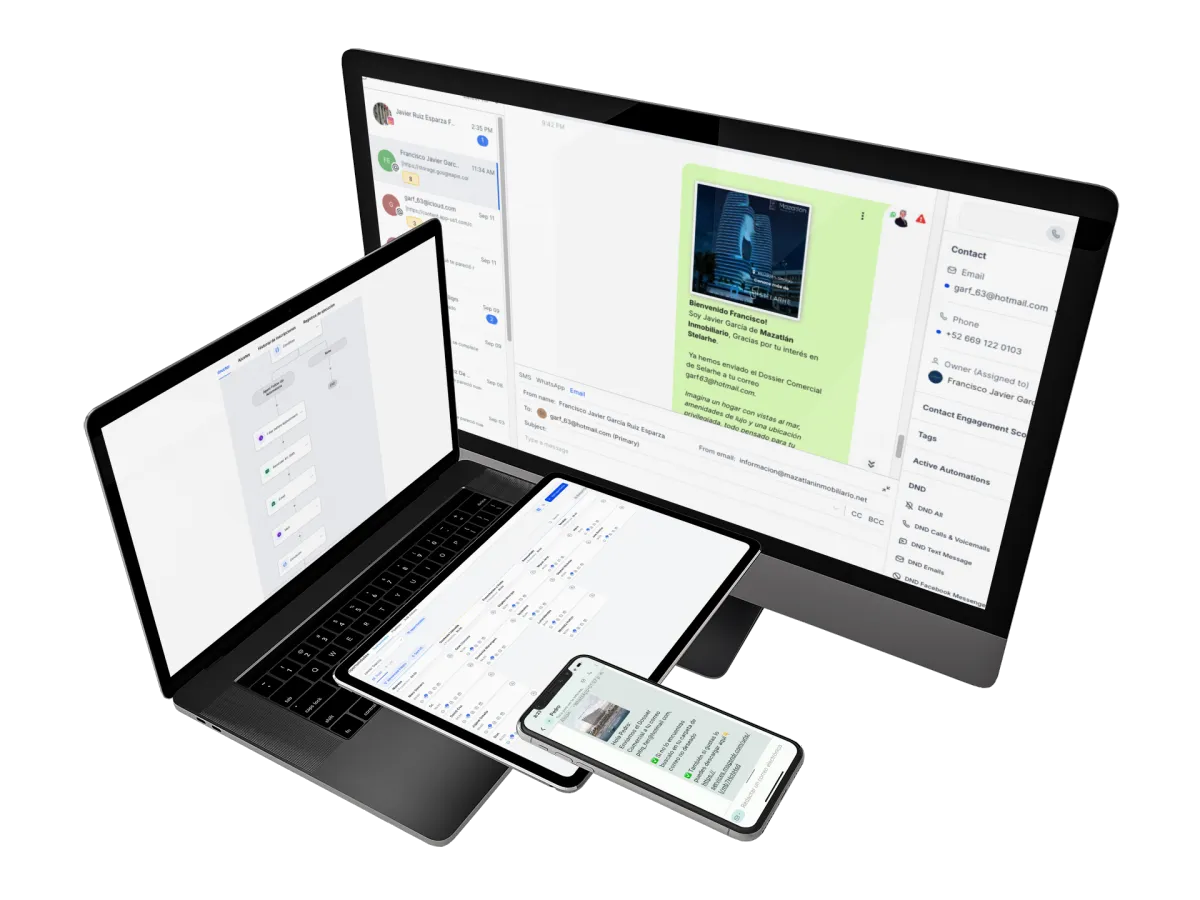 Envía mensajes de texto, correos electrónicos y mensajes de voz personalizados a tus Clientes POTENCIALES de forma eficiente.
